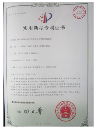 2012年8月29日,徐州銳馬重工機械有限公司又有一項實用新型專利獲得中華人民共和國國家知識產(chǎn)權(quán)局的審批通過。該項目由我公司與中國礦業(yè)大學聯(lián)合研究,專利權(quán)由雙方共有。