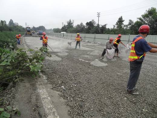 2014年6月,我公司冷再生機首次進入四川施工。先進入四川的是一臺600馬力WR2300L冷再生機,由河南隆裕工程公司于2011年向我公司購買,已工作了近四年,機器狀態(tài)仍然很好。冷再生工程為郫縣唐太路道路改造工程,主要路基的大修采用冷再生工藝。唐太路為水穩(wěn)路基結(jié)構(gòu),與華東等大部分地區(qū)不同的是路基下有大量的鵝卵石,這會對銑刨轉(zhuǎn)子造成很大的磨損,如果機器不是裝備了可折卸刀庫重型轉(zhuǎn)子,這個工程是不可能做下去的,刀具的損耗很大,齒套也有較大的磨損。施工隊伍在高經(jīng)理的帶領(lǐng)下,無論是施工速度還是施工質(zhì)量均獲得管理方的好評,打消了承包方最初對國產(chǎn)設備的疑慮。